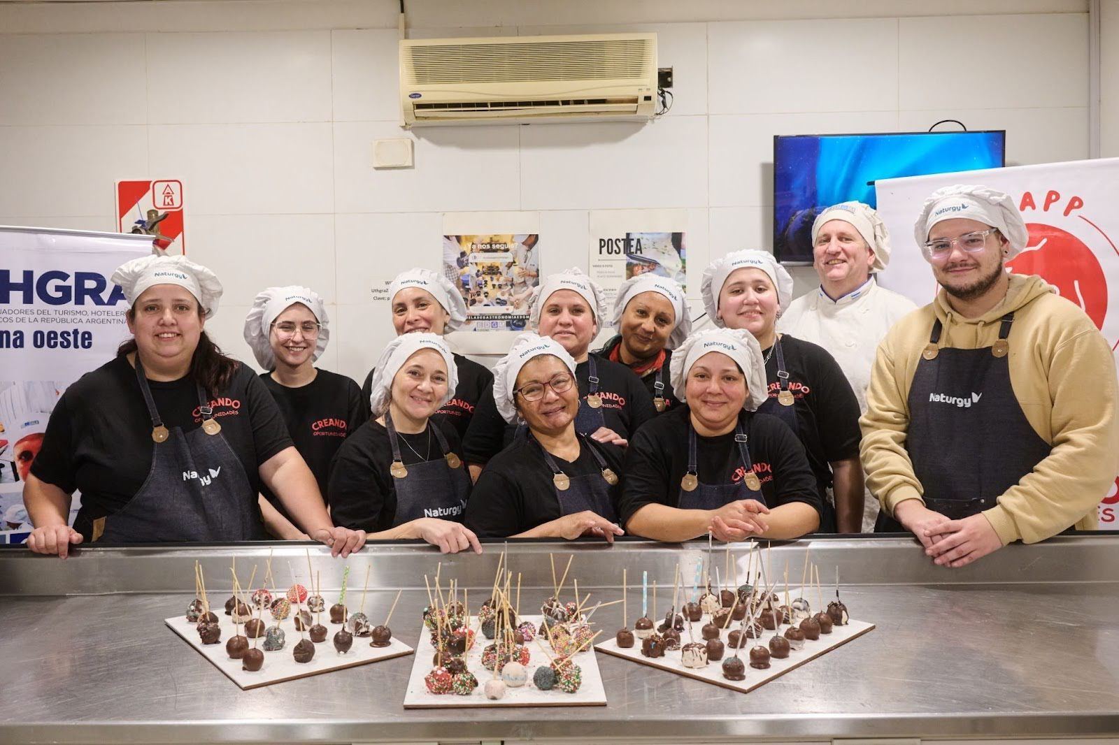 Junto a UTHGRA, Seccional Zona Oeste, se llevó adelante una clase especial donde los participantes aprendieron a hacer cake pops. “Lo que generamos acá es dar una herramienta para que los chicos puedan generar algún trabajo o proyecto personal relacionado con la cocina”, comentó Pablo Alejandrini, profesor del programa.
