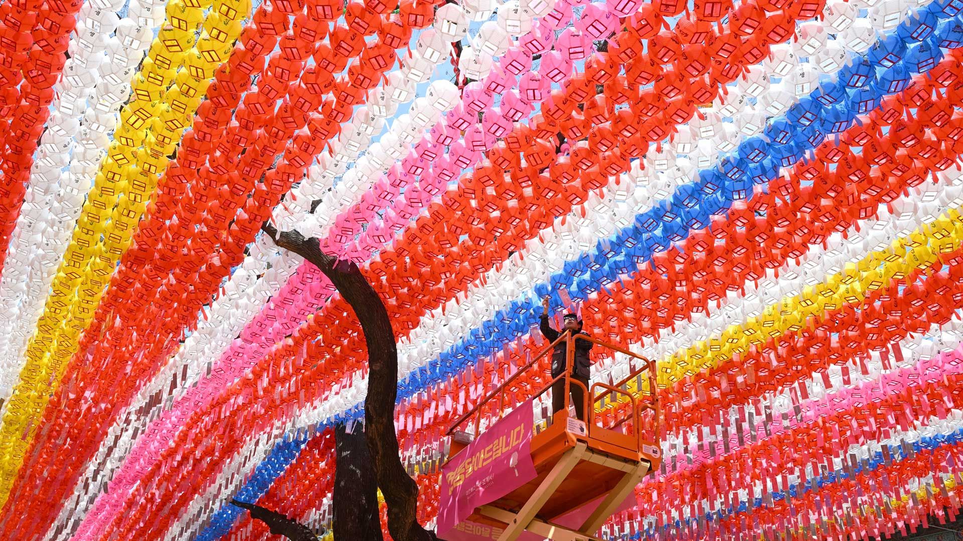 Una vista aérea muestra globos aerostáticos decorados con motivos tradicionales antes de su lanzamiento durante el festival anual de globos aerostáticos celebrado para conmemorar el Eid al-Fitr, que marca el final del mes sagrado de ayuno islámico del Ramadán, en la aldea de Semayu, en Wonosobo, Java Central, Indonesia. | Foto:DEVI RAHMAN / AFP