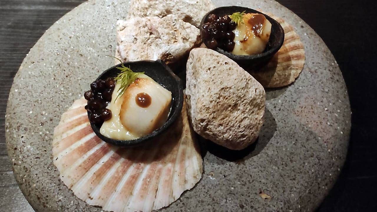 El menú Puro Mar, ese recorrido en siete pasos que Oggero define como "el concepto que la guía vio en nosotros", es una declaración de principios. Más que una degustación, es una travesía territorial. Empieza, claro, por las ostras patagónicas, su marca registrada: mineralidad pura, un golpe de iodo que despierta el paladar como una ola fría.